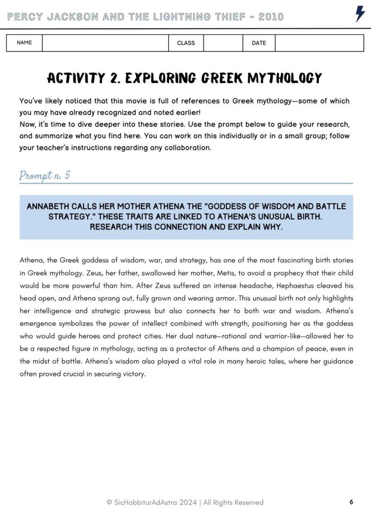 Whether you’re using the film to kick off your mythology unit or to enrich it, this tool ensures that learning remains focused, thoughtful, and aligned with curricular goals.